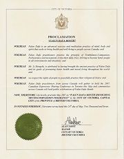 二零零七年五月二十四日,加拿大不列颠哥伦比亚省首府维多利亚市宣布二零零七年五月为“法轮大法月”。