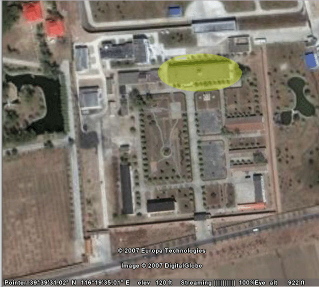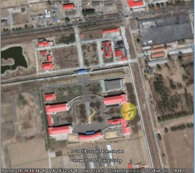 下图是臭名昭著的所谓“法制培训中心”的卫星影像,黄色部份是一幢三层小楼--许多法轮功学员就是在这里遭受残酷折磨迫害。