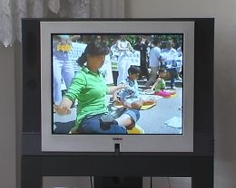 ![]() Fox电视台报道法轮功学员的抗议活动 |