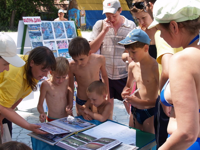 由于是周日,天气又特别好,所以来自乌克兰不同城市的游客都到这里来游玩。法轮功学员借此机会向来这里休息的民众揭露中共如何迫害信仰“真、善、忍”的法轮功学员,甚至活摘法轮功学员器官出售以牟取暴利。