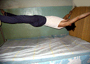 “抻床”,是将两张单人铁床并上,将学员按在两床中间的角铁上,四肢分别铐(绑)在床的四个角上拉紧,手脚不能随意活动。抻床可以摇、抻、拉、拽。遭受此酷刑后,人马上就会全身疼痛难忍。有的大法学员被折磨的死去活来,直至筋断骨折。有的大法学员被迫害的精神失常,有的致残。