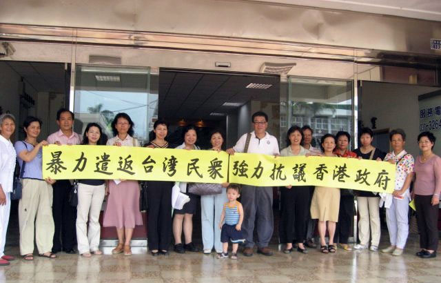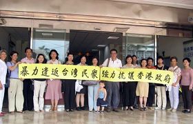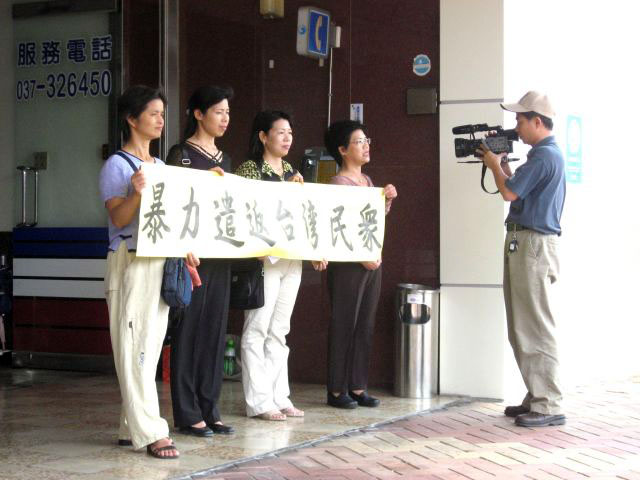 法轮功学员向前往议会参加苗栗县议会临时会审议的议员说明港府在中共黑手指使下,对入境的法轮功学员无理施暴及恶意遣返,严重违反人权。法轮功学员表示,在香港主权移交十周年前夕,数百位台湾民众被非法禁止入境,成为香港史上最大的遣返案。