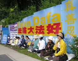 二零零七年七月十四日,加拿大蒙特利尔法轮功学员在唐人街中山公园集会,揭露、谴责中共迫害法轮功,纪念法轮功学员八年来反迫害、讲真相的历程,呼唤正义良知,共同终结中共对法轮功的迫害。