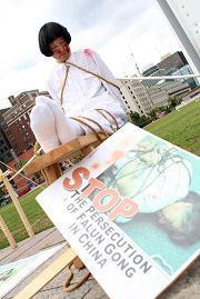 瑞典游客支持法轮功 谴中共迫害