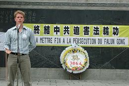 亨利•弗尔诺(Henry Fernaud)主动走上台表示支持法轮功学员反迫害,鼓励法轮功学员不要放弃。