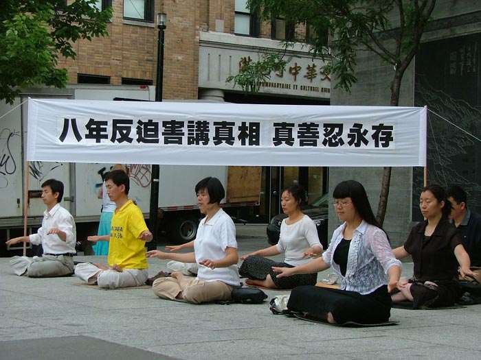 一位坚持在唐人街讲真相的法轮功学员在发言中说:“第一次站在唐人街炼功,心情十分复杂。一方面我为自己又能在公园里炼功而感到高兴;另一方面,我又感到很伤感,作为中国人,我在自己的祖国却没有炼功的自由,而且至今在中国大陆超过数千万法轮功修炼者仍然没有修炼的自由。就在两周前,所谓的中共建党日,中共又在全国范围内秘密实施了对法轮功学员的大规模绑架和抓捕。”