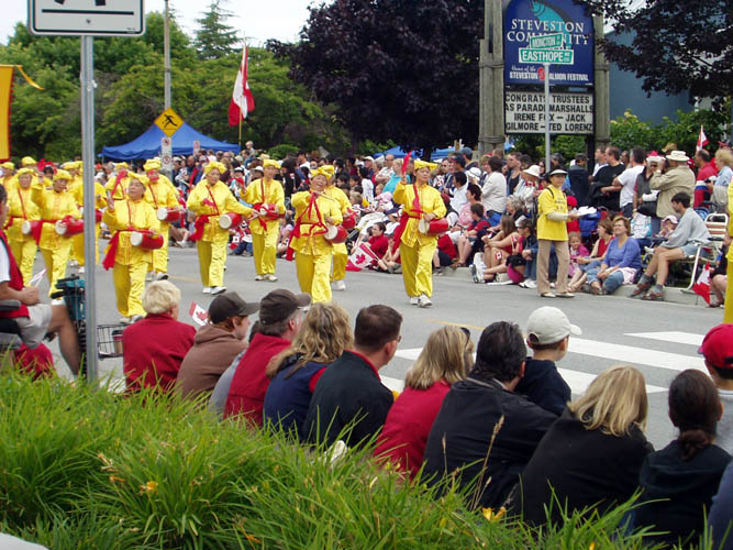 ![]() 在游行中打腰鼓(右二) |