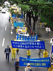 二零零七年七月十五日,法轮功学员在东京繁华闹市区举行了反迫害集会和游行,抗议中共对法轮功长达八年的残酷打压。