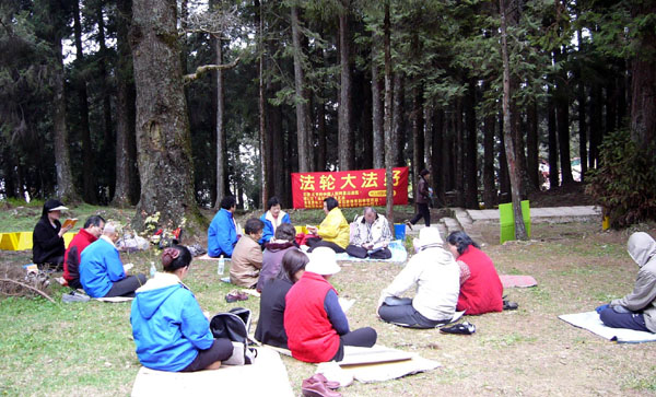 ![]() 在阿里山上洪法讲真相前的学法 |