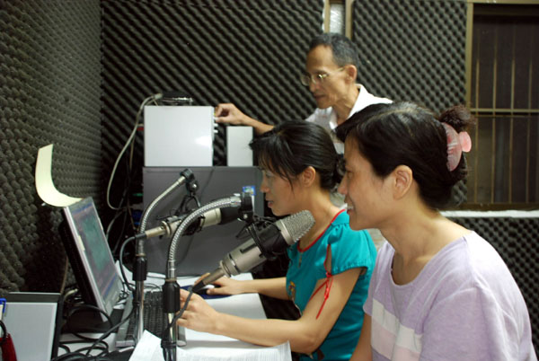 ![]() 学员正录制节目在空中广传法轮大法福音 |