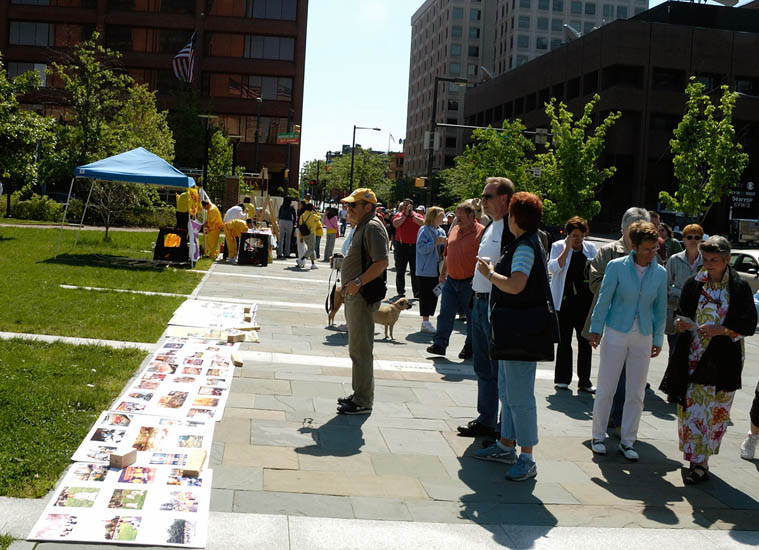 八年了!多少个周末,这些法轮功学员不顾一周工作的劳累,自愿来到自由钟,向成千上万的游客讲述着法轮功真相,传递着同一个声音--尽快制止迫害法轮功!