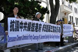 旧金山法轮功学员中领馆前抗议港府暴力遣返(图)