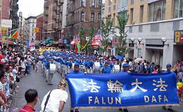 纽约华埠独立日游行 华人赞“法轮功了不起”(图)