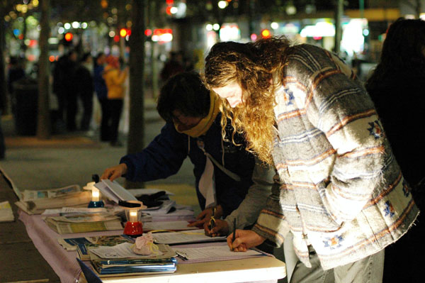 ![]() 行人签名呼吁制止迫害 |