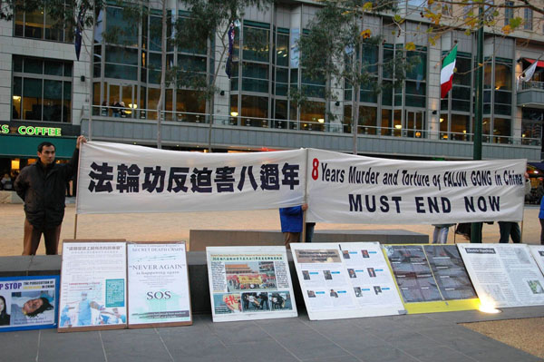 有两位从纽省来墨尔本出差的西人男士Rorbert和 Michael。Rorbert认真听了法轮功学员讲真相后表示,这种情况竟然在文明时代的二零零七年还存在,真让人难以相信,「我希望你们能阻止这种可怕的事情继续恶化。」Michael 还说:「 共产主义是个错误,根本就不应该存在。」随后他们也都在征签表上签了名。