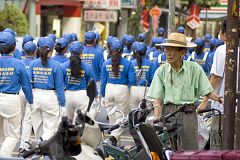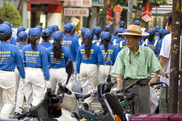 ![]() 法轮功首次在永和游行,许多民众好奇的驻足观看 |