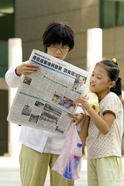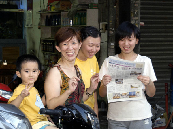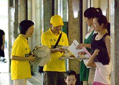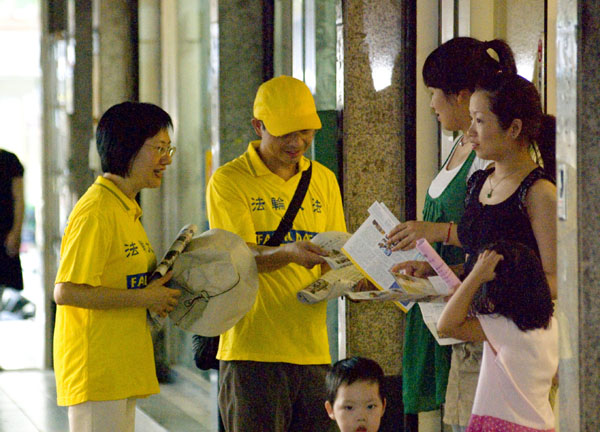 ![]() 民众很乐于接到法轮功真相资料,马上阅读 |