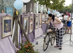 在中和公园广场的另一头,举办着「法轮大法图片展」,用一幅幅法轮大法弟子证实法的真实照片,诠释法轮功学员平和理智、坚不可摧的精神,在险恶的环境下自发性的用各种方式帮助被中共谎言欺骗和误导的人们了解事实真相,并呼吁国际社会共同关注、全力制止迫害。