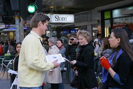 在集会现场,来自南澳大利亚的Paul William是一名基督徒,他非常了解基督徒在中国被迫害的情况。看了真相展板后,他表示非常支持法轮功,要求终止迫害,他认为如果现在的情况不改变,零八年奥运会就不能在中国举办。他还在反迫害征签表上签名支持。
