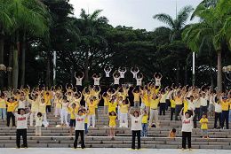 为更多的善良民众了解中共恶党对法轮功持续八年的迫害,二零零七年七月二十一日,新加坡部份的法轮功学员在公园里,白天集体炼功;夜幕降临时,进行烛光悼念活动。