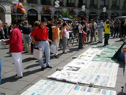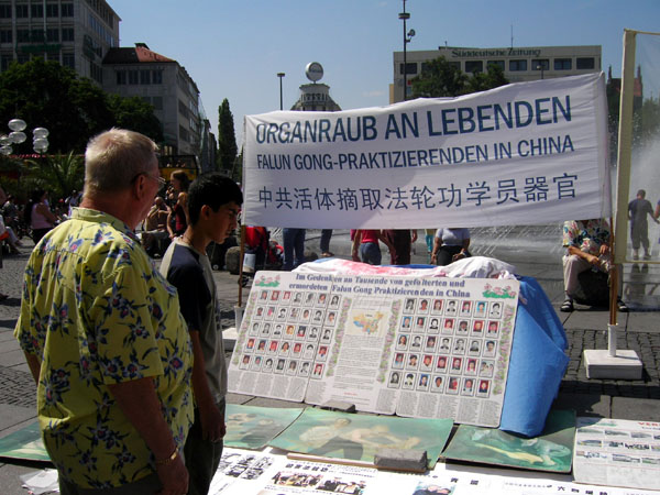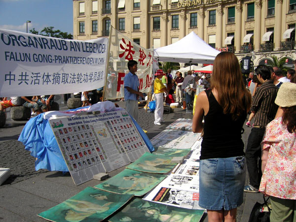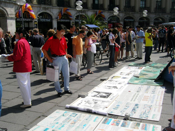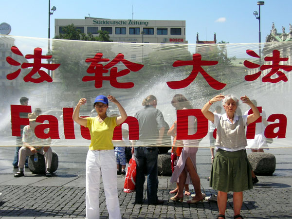 【明慧网二零零七年七月二十七日】二零零七年七月二十一日,法轮功学员在德国慕尼黑市中心举行活动,抗议中共对信仰“真善忍”的法轮功修炼者长达八年的