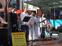 ![]() 由法轮功学员们组成的合唱团演唱自创歌曲,揭露迫害 |