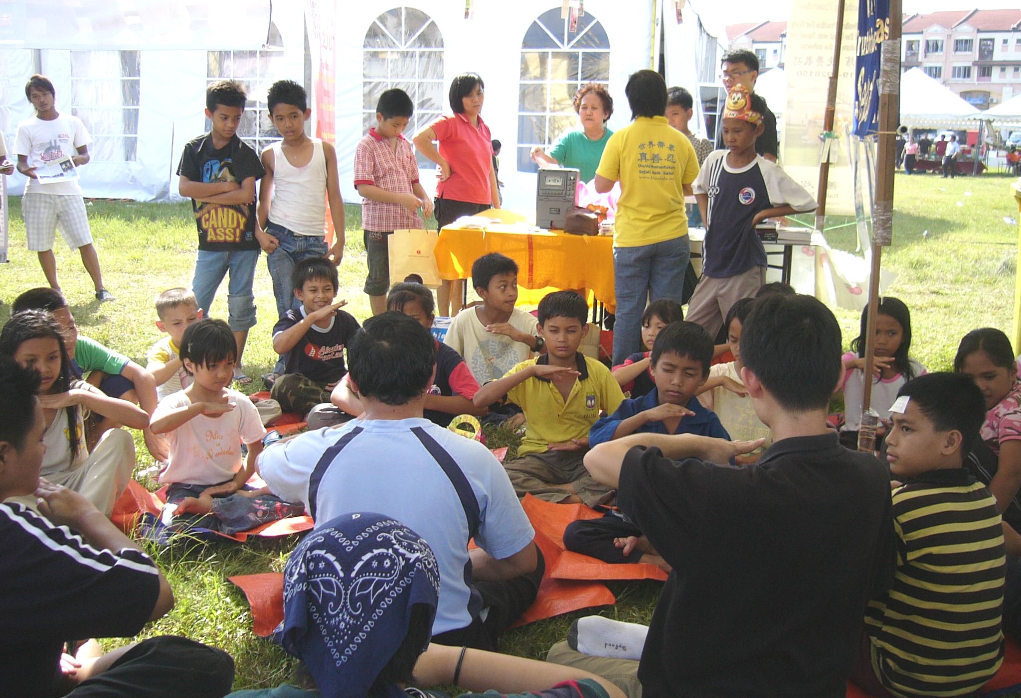 ![]() 一群马来小朋友专心的向学员学习打坐 |