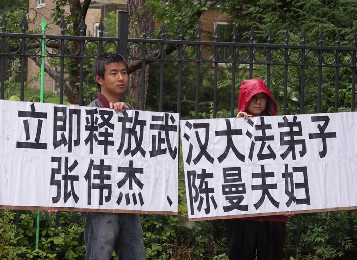 ![]() 丹麦法轮功学员抗议中共恶党绑架武汉大法弟子 |
