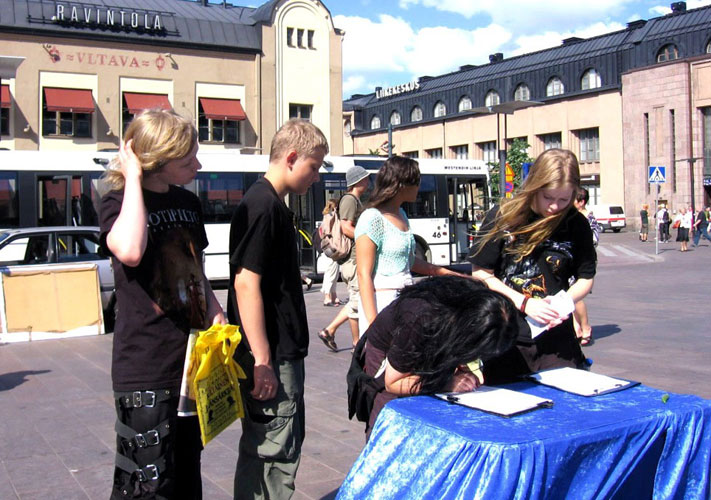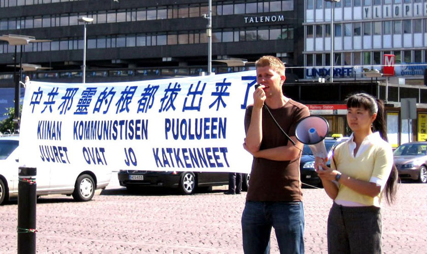 ![]() Oli用芬兰文一遍遍的讲解《九评共产党》,揭露中共对法轮功学员灭绝人性的虐杀罪行。 |