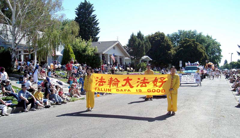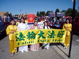 ![]() 法轮功学员参加游行,向人们介绍这个有益身心的功法 |
