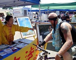 游行结束后,许多市民来到法轮功学员的摊位前了解更多信息,其中有很多人想立即学功,询问什么时候有教功。学员们记下他们的联系方式,准备安排时间来当地建立炼功点教功。