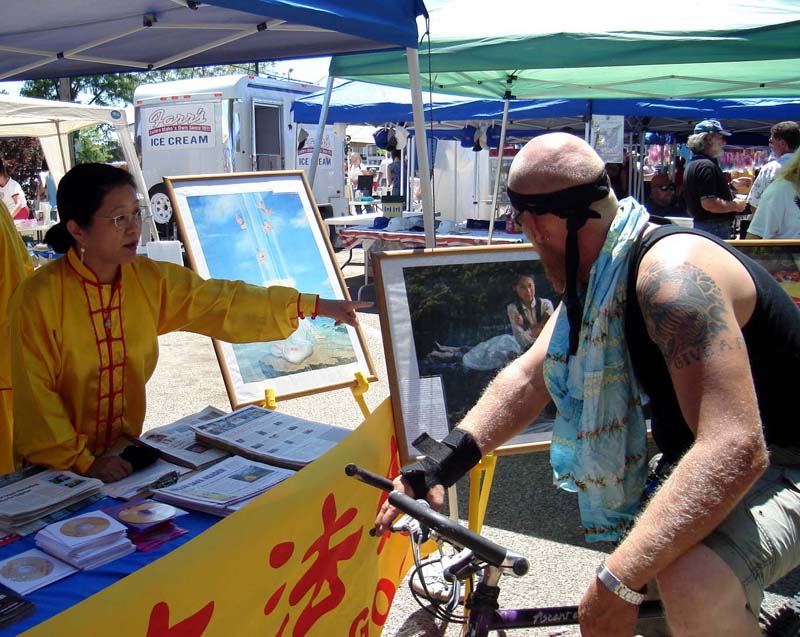 功法演示吸引许多游人观看,电视台的摄影师拍摄下了炼功的镜头,并对功法非常感兴趣。他留下了名片,希望有时间专门给法轮功学员安排一次采访。很多游客都或多或少的知道中国正在发生的对法轮功的迫害,并对受迫害的法轮功学员感到同情与难过,其中有一位年轻的女孩得知中共对无辜百姓残酷迫害的恶行后说,“这实在是一件非常耻辱的事情”。