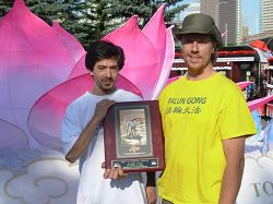 组委会表示,今年牛仔节特邀了三位嘉宾,即亚省前省长拉尔夫·克雷(Ralph Klein)和加拿大顶级运动员卡雷勃·陶斯(Kaleb Toth)等组成了VIP组,他们给法轮大法团队颁发了VIP名人奖。在他们看了法轮大法学员的花车后,觉的两个奖项还不足以表达对法轮大法团队的赞赏,于是第三次来到队伍面前,再次颁发了牛仔节特别奖。