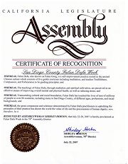 ![]() 美国圣地亚哥法轮大法周,多位美国议员和政府官员嘉奖法轮功。 |
