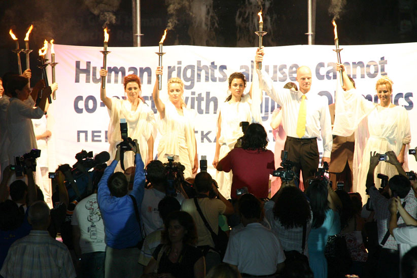 ![]() 二零零七年八月九日晚,“人权圣火”在希腊点燃 |