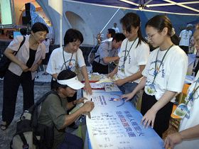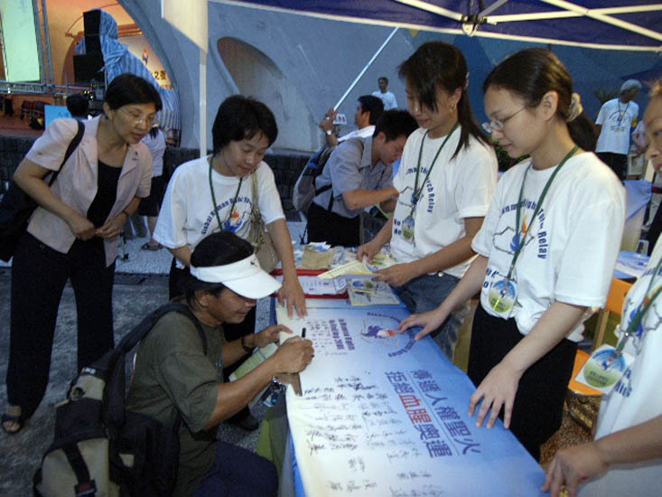 ![]() 参加的观众签名支持人权圣火 |