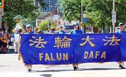 ![]() 法轮功天国乐团在汉密尔顿嘉年华会的游行中 |