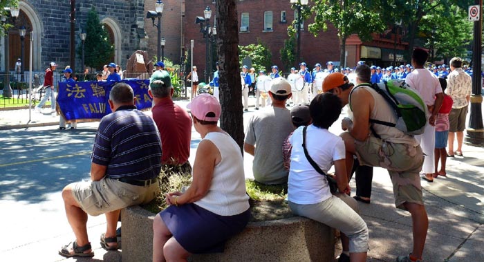 ![]() 汉密尔顿嘉年华会游行的观众们被法轮功天国乐团所吸引 |
