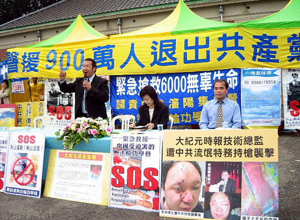 ![]() 陈昌辉(站立者)声援九百万退出共产党暨谴责中共营活体摘卖器官 |