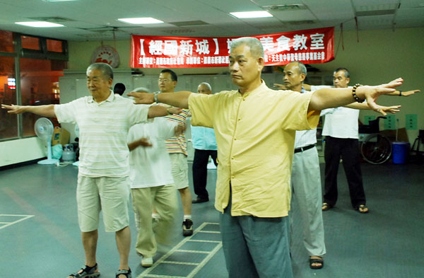 ![]() 村民学炼功法都很用心 |