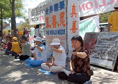 ![]() 酷暑中,法轮功学员宁静的打坐 |
