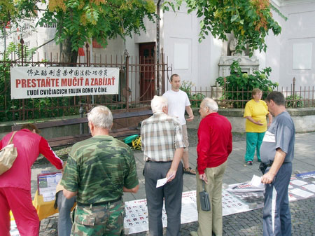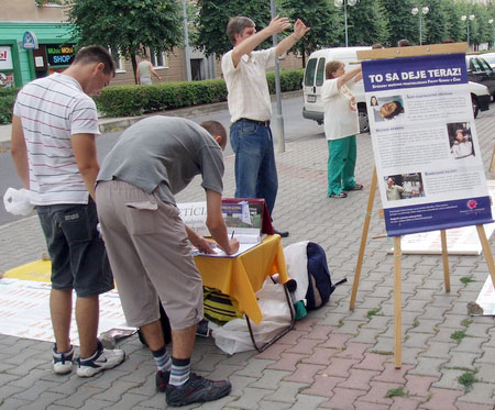 真理报(Pravda)地方版的一位记者前来参观信息日,并了解了法轮功学员们四年来在斯洛伐克各地举行抗议中共迫害活动的成果。