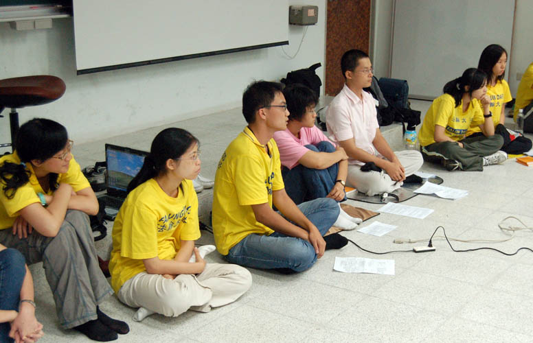 最后一天的大组交流,有同修分享其利用媒体讲清真相的心得,有同修则跟大家分享身为学生的我们,可以如何利用校园生活的相关资源(例如:BBS、MSN等)向身边的朋友讲真相。在听完大家的心得后,有些起初不敢讲清真相的学员,决定踏出第一步,放下执著,加入证实大法的行列。