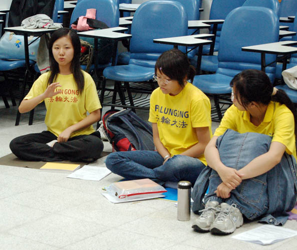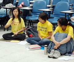 有位学员提到其如何在校园里透过展现大法弟子先他后我的风范,让长期以来受共产党文化毒害及受到谎言蒙蔽的大陆学生明白了真相。她说:「我们是他们来到台湾最先接触到的学生,而我们正好是法轮大法修炼者,他们一定是非常可贵的生命。」「虽然他们在听真相的时候表现的爱理不理、一副不在乎的样子,但他们确实都听进去了,善恶在他们心中自然分明。」
