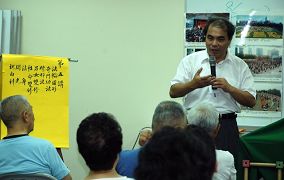 台湾嘉义经国新城举办“法轮大法九天学法炼功班”的第五天,云林县口湖国中吴雁门校长跟大家分享修炼心得。