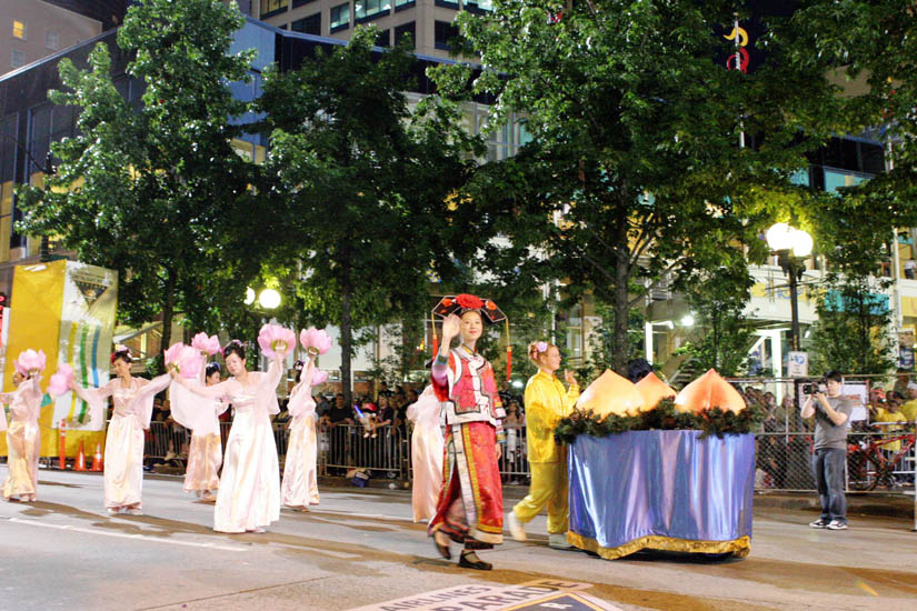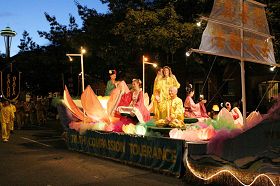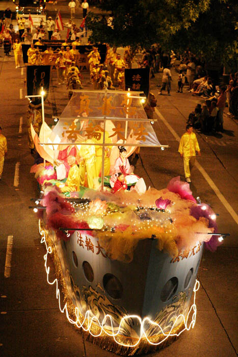 法轮功团体自二零零五年连续三年应邀参加游行,为观众展现了前所未有的宏图,开启心灵,以期引领人们走回神传文化中的人类道德标准。
