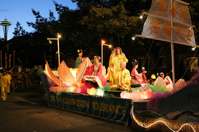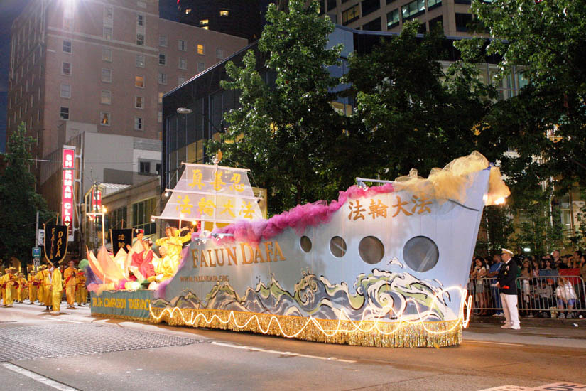 以“驶入庄严的唐朝的神奇航行”(A Mythical Voyage into the Majestic & Ancient Tang Dynasty)为主题的法轮功“大法船”花车在此次游行中荣获最佳“制造工艺”奖 (Best Workmanship Award)。海洋节主办单位因此颁发了奖品,并邀请两位海军军人手持官方锦旗走在队伍最前面以兹褒奖。电视七台(KIRO 7)作了游行现场直播。