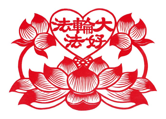 护身符:法轮大法好,真善忍好(剪纸)