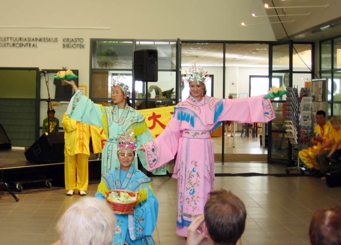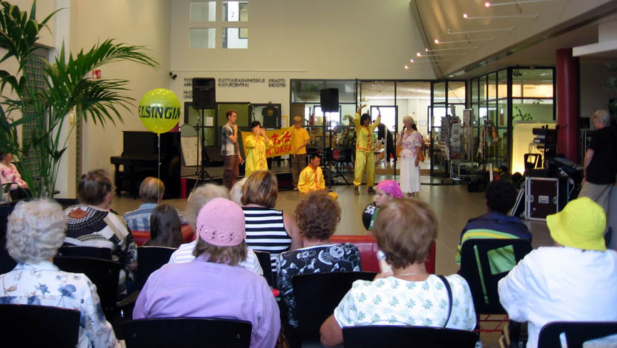 ![]() “艺术之夜”在Kannelmakeen图书馆举办活动,人们观看法轮功学员的功法演示 |
