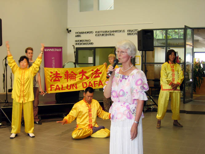 ![]() 学员Sinikka向民众讲述法轮大法的美好和自己在修炼中的感受及中共对法轮功的迫害真相 |